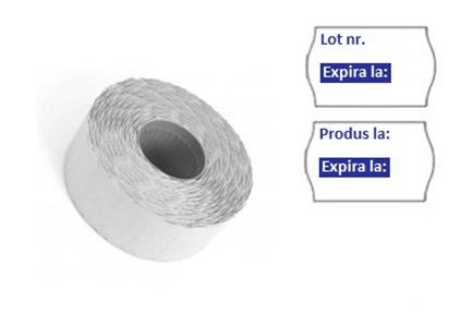 Etichete autoadezive cu adeziv permanent, dimensiune 26×16mm, colturi rotunjite, pre-tiparite „Produs la / Expira la”, 1000 etic/rola, albe